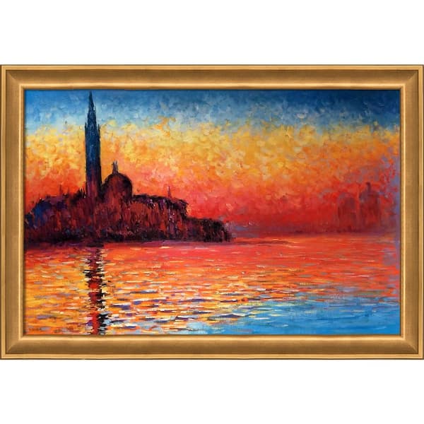 San Giorgio Maggiore by Twilight by Claude Monet Muted Gold Glow Framed Nature Oil Painting Art Print 28 in. x 40 in.