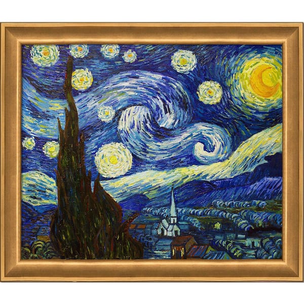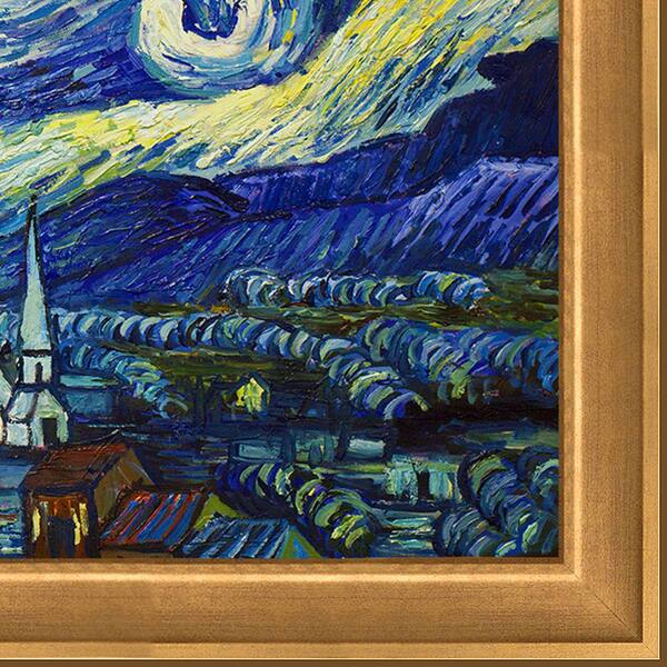 Starry Night By Vincent Van Gogh Muted Gold Glow Framed Astronomy Oil Painting Art Print 24 in. x 28 in.
