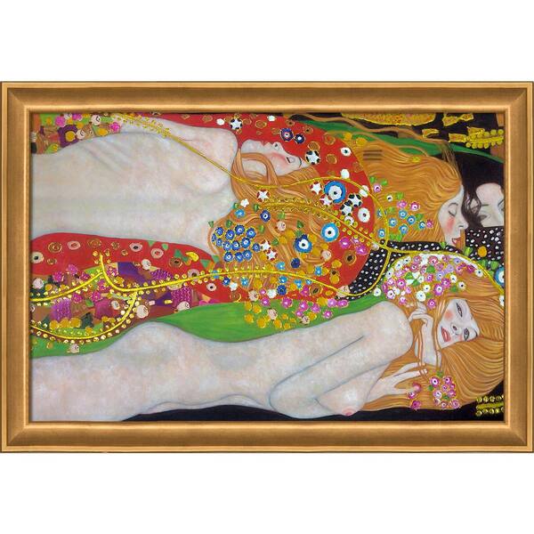 Water Serpents II (Luxury Line) by Gustav Klimt Muted Gold Glow Framed People Oil Painting Art Print 28 in. x 40 in.