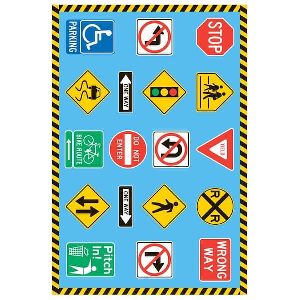Fun Time Traffic Signs Multi Colored 51 in. x 78 in. Area Rug-DISCONTINUED