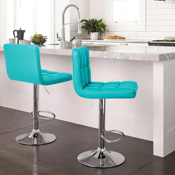 33 in. - 44 in. Height Blue Low Back Metal Adjustable Bar Stool with PU Leather-Seat 360° Swivel (Set of 2)