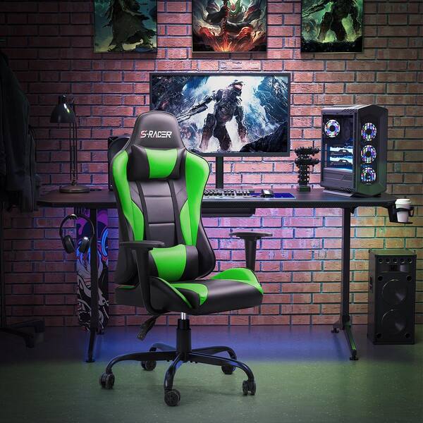 Gaming Chair High Back Racing Computer Chair PU Leather Adjustable Seat Height Swivel Chair with Headrest(Green)