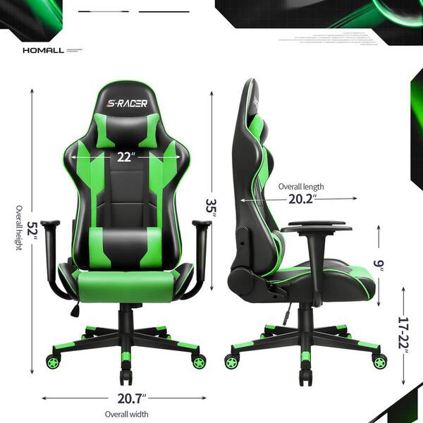 Gaming Chair Racing style Chair Office Chair High Back PU Leather Computer Chair with Headrest (Green)