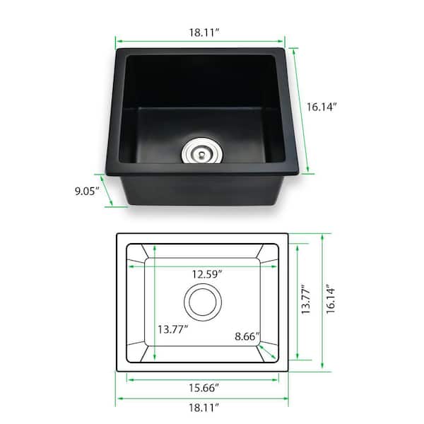 18 in. Undermount Single Bowl Matte Black Quartz Kitchen Sink with Basket Strainer