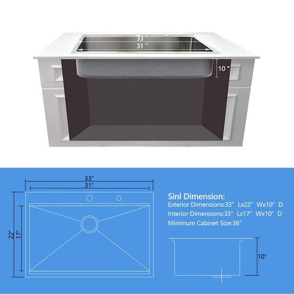 33 in. Handmade Drop-in Single Bowl 16 Gauge Gunmetal Black Stainless Steel Workstation Kitchen Sink with Accessories