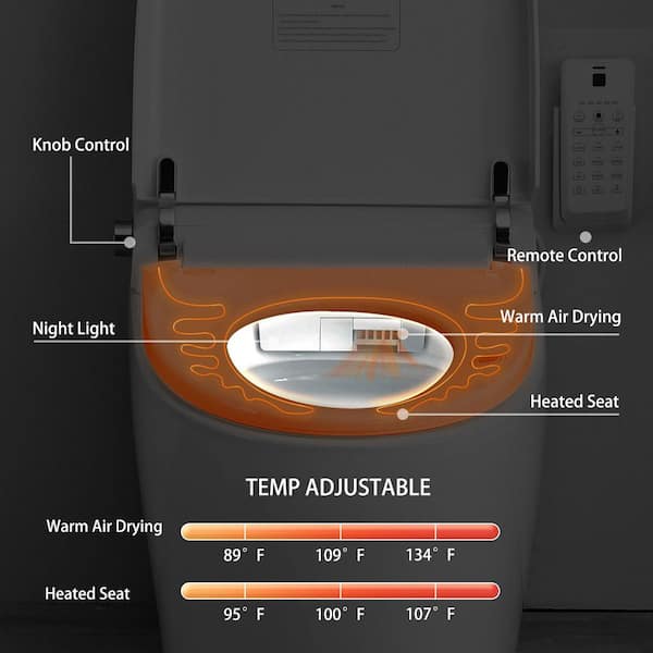 Elongated Smart Toilet Bidet 1.28 GPF in White with Blackout Flush, Off-Seat Auto Flush, Heated Seat and Warm Air Dryer