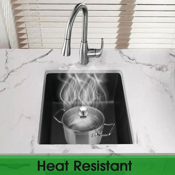 Matte Black Granite Composite 13.77 in. Undermount Bar Sink With Bottom Grids