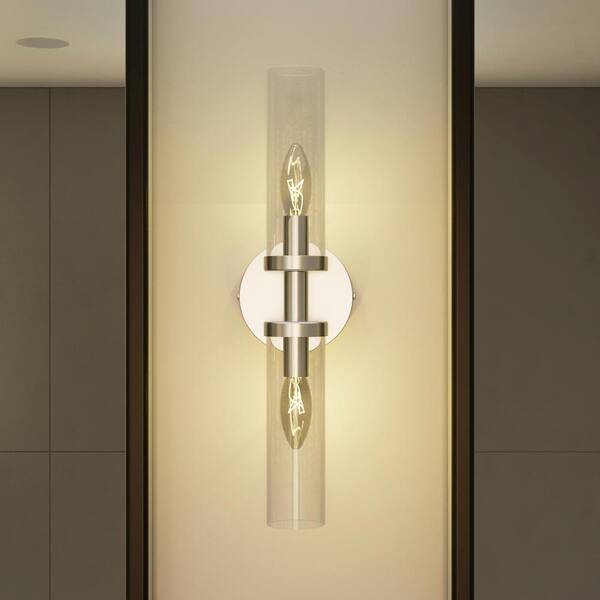 Asherton 4.7 in. Modern 2-Light Brushed Nickel Dimmable Vanity Light with Clear Glass Shade