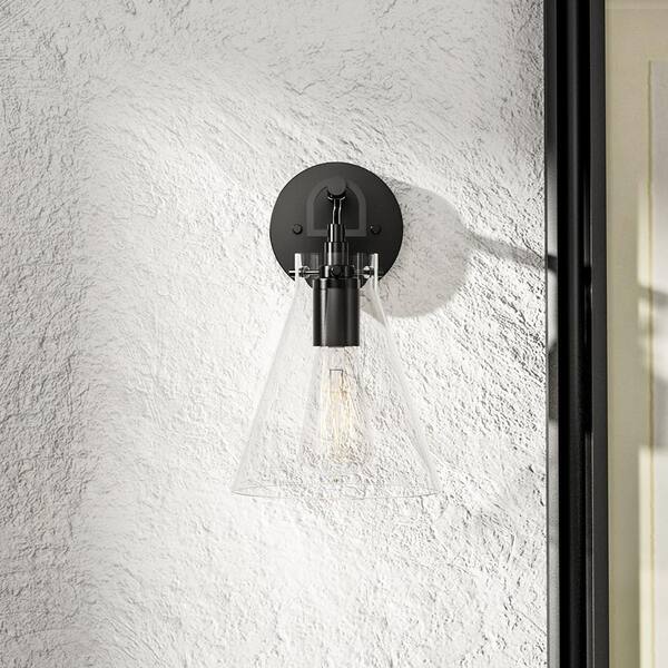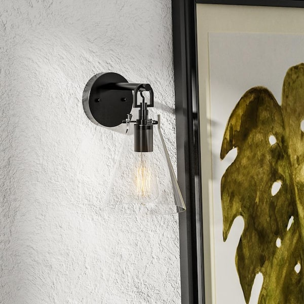 Forrest Modern 1-Light Matte Black Dimmable Wall Sconce with Clear Glass Shade