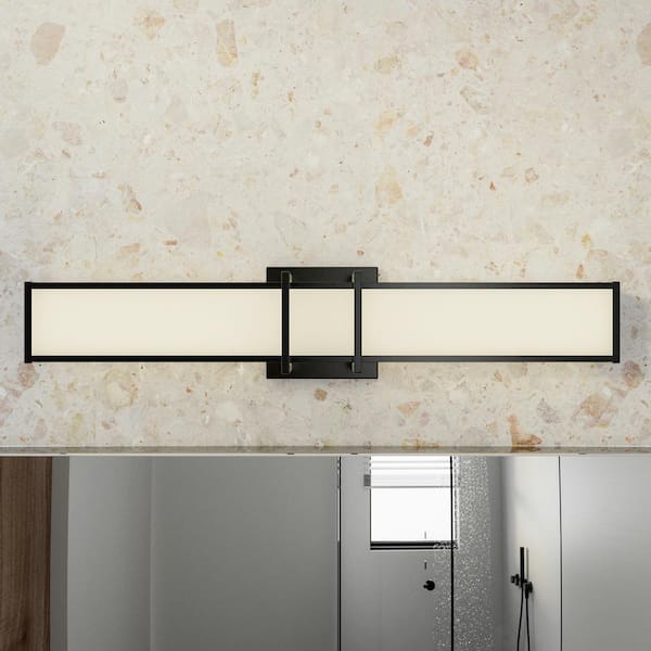 Kole 23.6 in. Modern 1-Light Matte Black Integrated LED Vanity Light Bar with Frosted Acrylic Shade