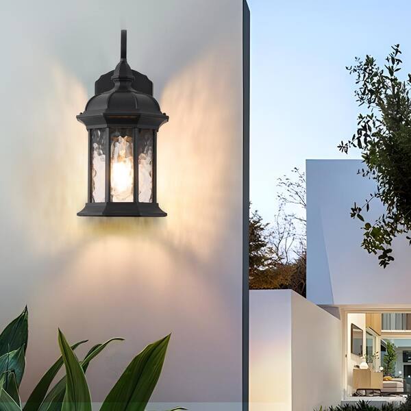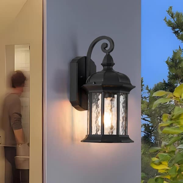 Parsons Classic 1-Light Matte Black Dimmable Outdoor Wall Sconce with Water Glass Shade