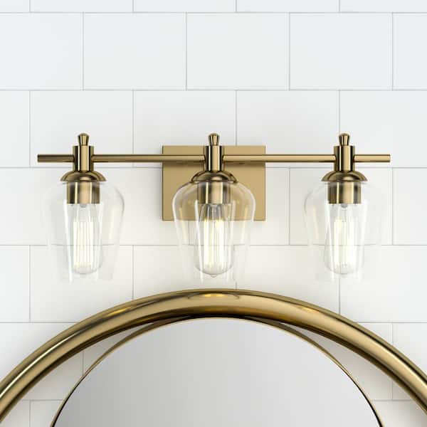Rodberg 21 in. Classic 3-Light Brushed Gold Dimmable Vanity Light with Clear Glass Shade