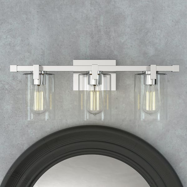 Salvirola 24 in. Modern 3-Light Brushed Nickel Dimmable Vanity Light with Clear Glass Shade