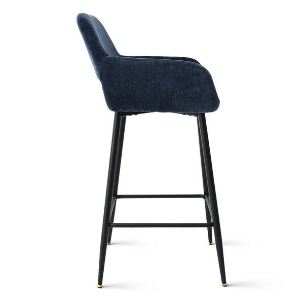 19 in. W x 36 in. H Blue Fabric Upholstered 27 in. Counter Stool with Arms (Set of 2)