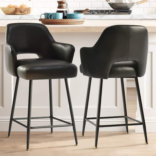25.5 in. Black High Back Metal Frame Counter Height Bar Stool with Faux Leather Seat (Set of 2)