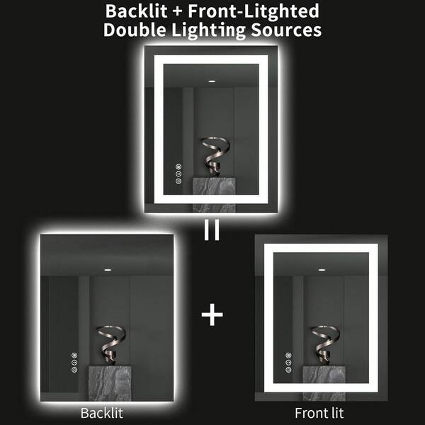 28 in. W x 36 in. H Rectangular Frameless LED Light Wall Bathroom Vanity Mirror with Anti-Fog in Black