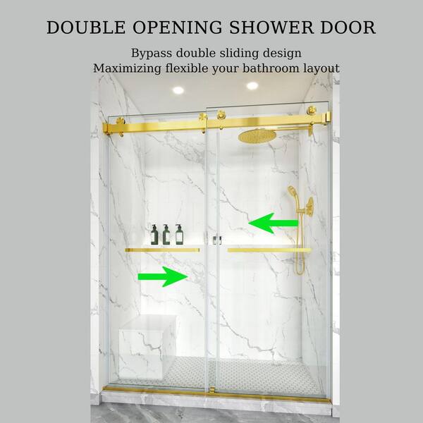56-60 in. W x 72 in. H Double Sliding Frameless Shower Door Brushed Gold with 3/8 in. Clear Glass
