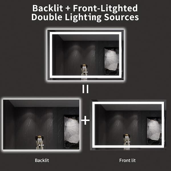 60 in. W x 36 in. H Rectangular Frameless LED Light Wall Bathroom Vanity Mirror with Anti-Fog in Black
