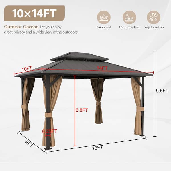 10 ft. x 14 ft. Double Galvanized Steel Roof Aluminum Frame Outdoor Patio Hardtop Gazebo with Netting and Curtains