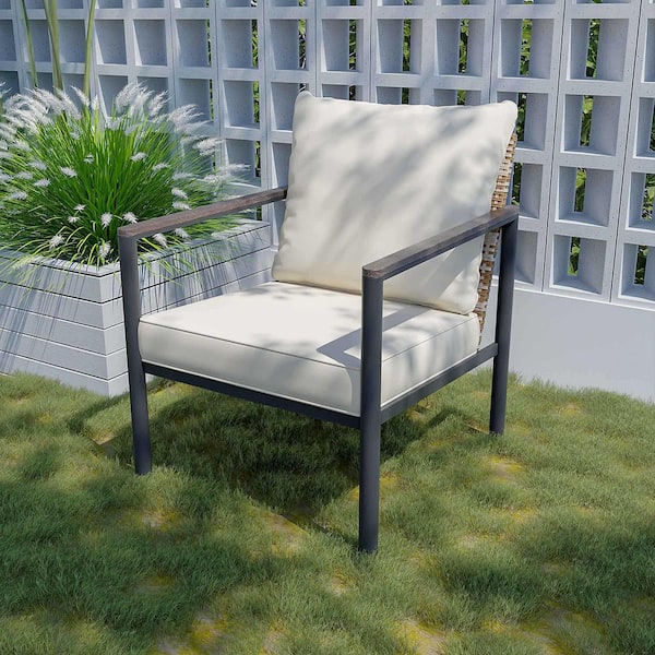 Wicker Outdoor Chaise Lounge with Beige Cushions
