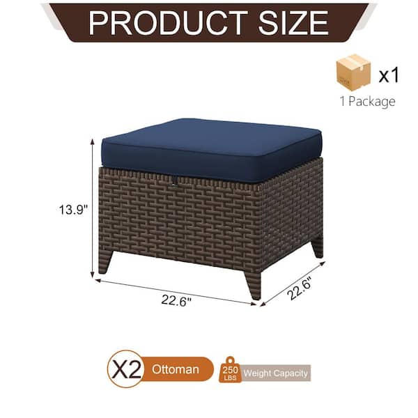 Wicker Outdoor Patio Ottoman with Blue Cushions (Set of 2)