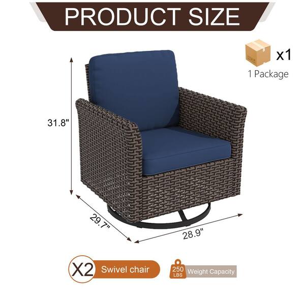 Wicker Outdoor Rocking Chair Patio Swivel with Blue Cushions (2-Pack)