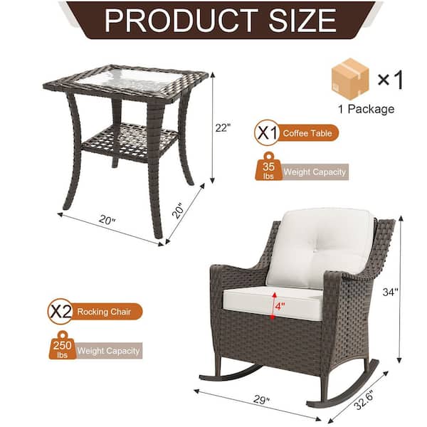 Wicker Outdoor Rocking Chair with Beige Cushions