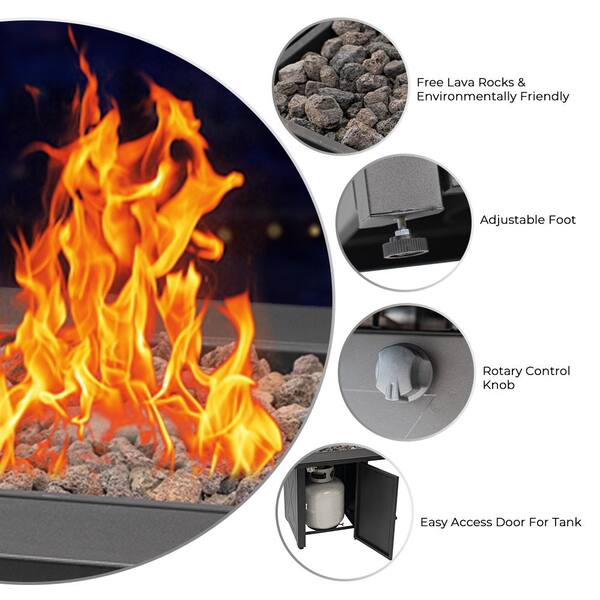 28 in. 50000 BTU Square Propane Fire Pit Table with Lava Rocks