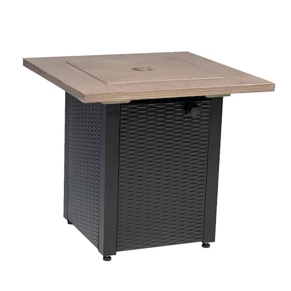 Lava Rocks 48000 BTU 28 in. Square Outdoor Faux Wood Table Top with Lid Quick Auto Ignition Propane Gas Fire Pit Table