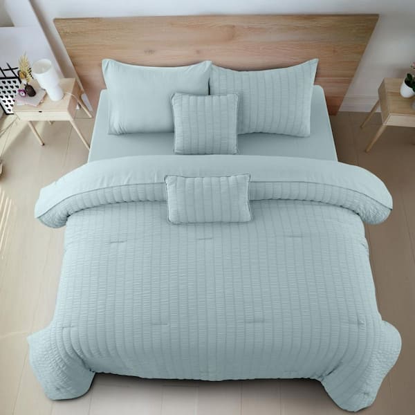 10-Piece Blue Solid Color Microfiber King Bed in a Bag