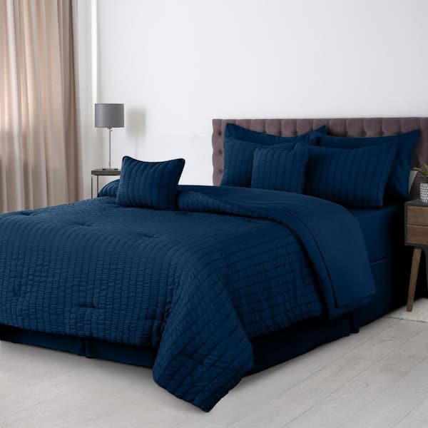 10-Piece Navy Solid Color Microfiber King Bed in a Bag