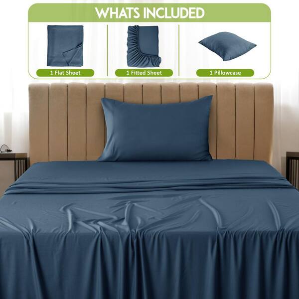3-Piece Navy Solid Color Microfiber and Bamboo Blend Twin Sheet Set
