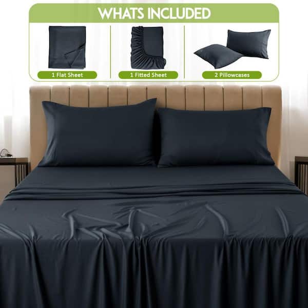 4-Piece Black Solid Color Microfiber and Bamboo Blend Full Sheet Set