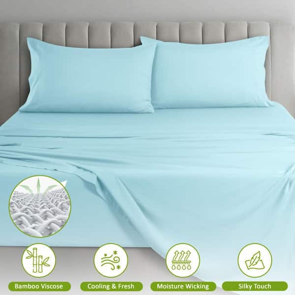 4-Piece Blue Solid Color Microfiber and Bamboo Blend Full Sheet Set
