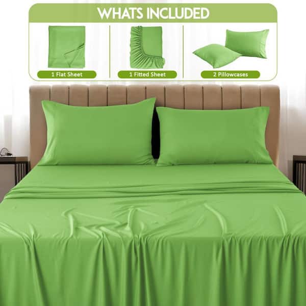 4-Piece Sage Solid Color Microfiber and Bamboo Blend Full Sheet Set