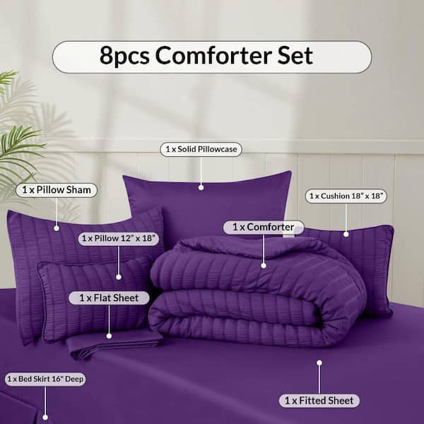 8-Piece Purple Solid Color Microfiber Twin Bed in a Bag