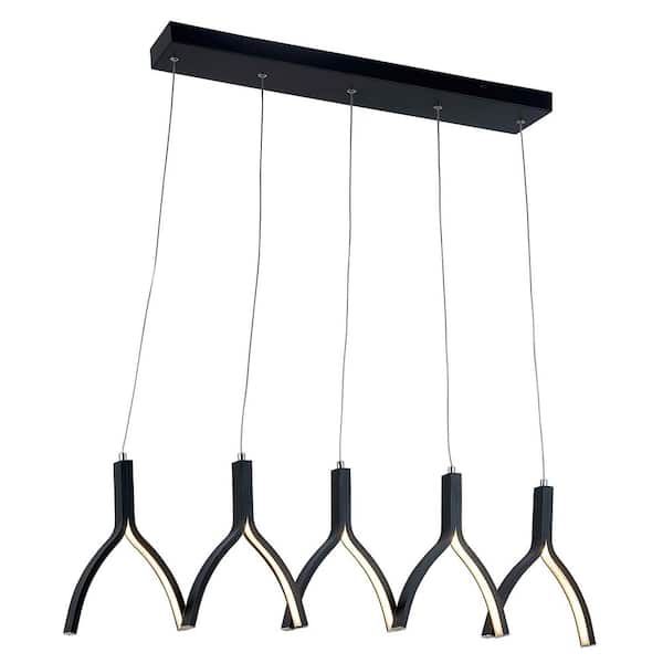 LE8821 55-Watt 5 Lights Black Integrated LED Pendant Light