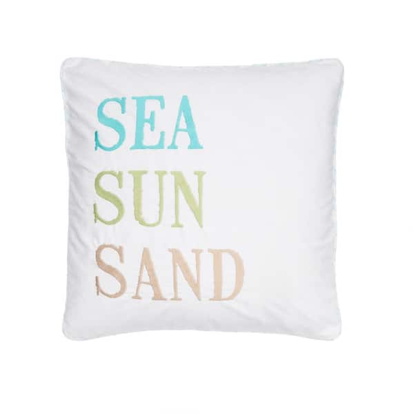 Biscayne Multicolored "SEA, SUN, SAND" Embroidered 20 in. x 20 in. Throw Pillow