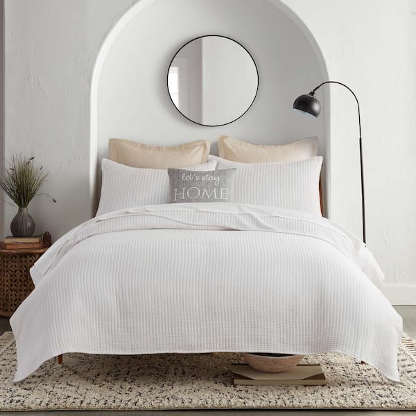 Caden Bright White Cotton Gauze Full / Queen Coverlet Blanket