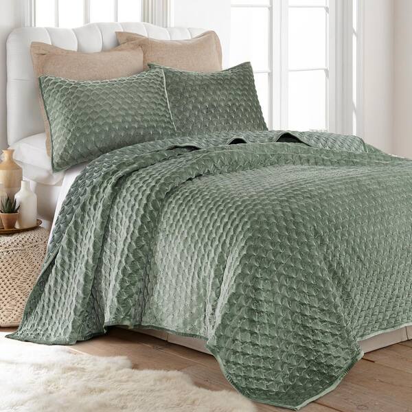 Merano Green Scallop Leaf Velvet Microfiber Full/Queen Quilt