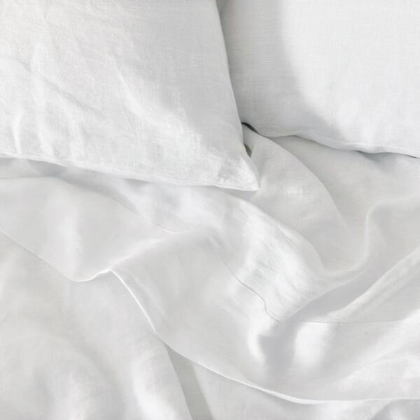 Washed Linen 4-Piece White Linen King Sheet Set