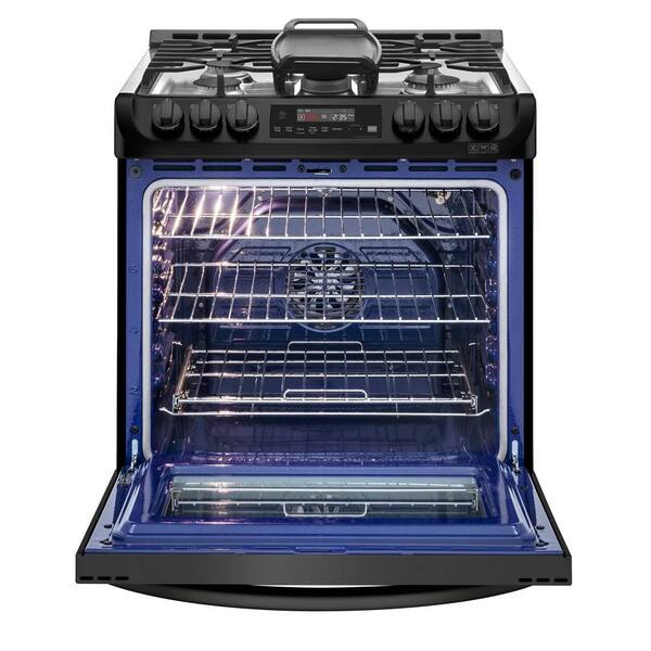 30 in. 6.3 cu. ft. Smart Slide-in Gas Range with ProBake Convection Oven in Matte Black Stainless Steel