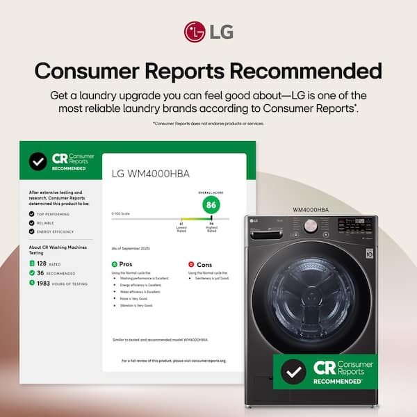 • 4.5 cu. ft. pedestal compatible or stackable LG front load washer