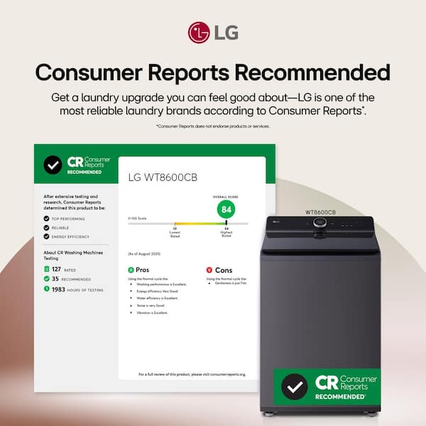 • Pairs best with LG electric DLE8600BE or gas DLG8601BE Dryer(s)
