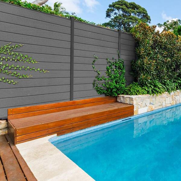 Complete Kit 6 ft. x 6 ft. Gray WPC Composite Fence Panel w/Pronged Holders and Post Kits (1 set)