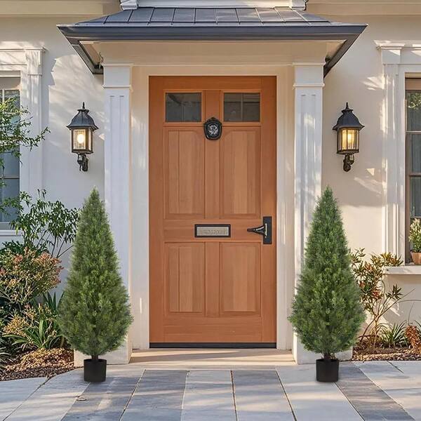 5 ft. Artificial Boxwood Tree Faux Cedar Tree Topiary Evergreen Potted Plants Artificial Tree for Home Decor ( 2-Trees )
