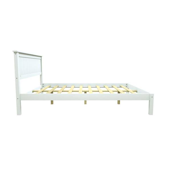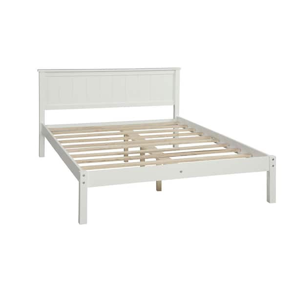 Morden White Wooden Frame Full Size with Headboard, Platform Bed with Strong Support