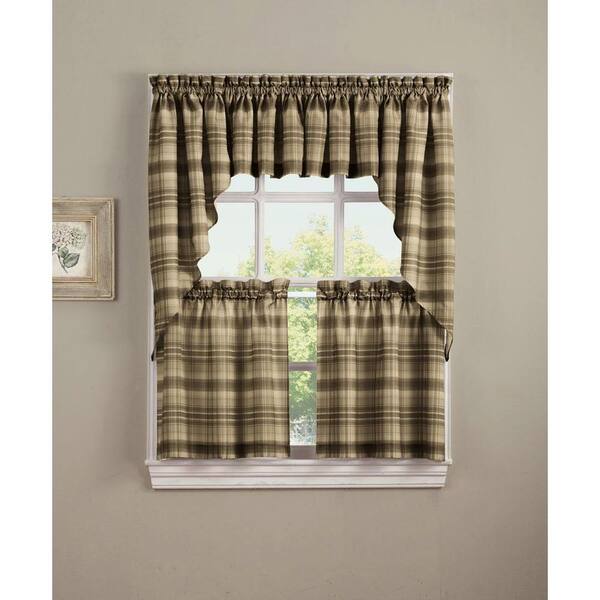 Semi-Opaque Chocolate Dawson Microfiber Plaid Kitchen Curtain Valance, 58 in. W x 14 in. L