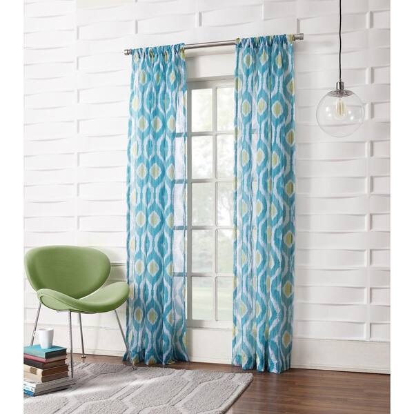 Sheer Marine No. 918 Millennial Marvin Ikat Crushed Sheer Curtain Panel, 50 in. W x 63 in. L