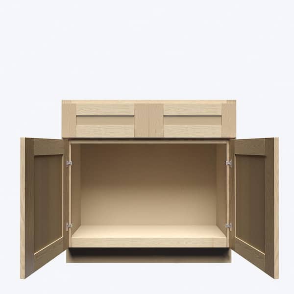 39 in. x 34.5 in. x 24 in. Lancaster Shaker Assembled Sink Base Cabinet with 2-Doors in Natural Wood